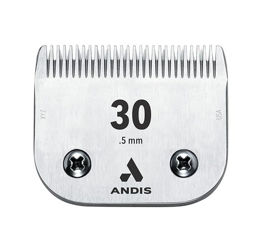 Andis 64075 Ultra Edge Dog Clipper Blade - Constructed Of Carbonized Steel, Exclusive Hardening Process With Long-Lasting Sharp Edges, 1/50-Inch Cut Length - For Larger Animals, Size-30, Chrome
