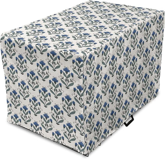 Ambesonne Floral Dog Crate Cover, Rhythmic Leaves Flowers Blossoms Nostalgic Style, Easy to Use Pet Kennel Cover for Medium Large Dogs, 48 Inch, Champagne Multicolor