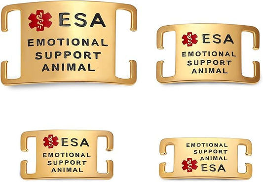 No Noise Stainless Steel K9 ESA Dog Tags, Slide on Dog Collar or Harness Quickly and Securely – PVD Gold/Extra Large