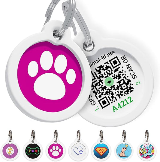 Smart QR Code-NFC Pet ID Tag - Dog Tags - Cat Tags - Online Pet Profile - Instant Email Alert -Scanned QR Tag GPS Location (Pink Paw)