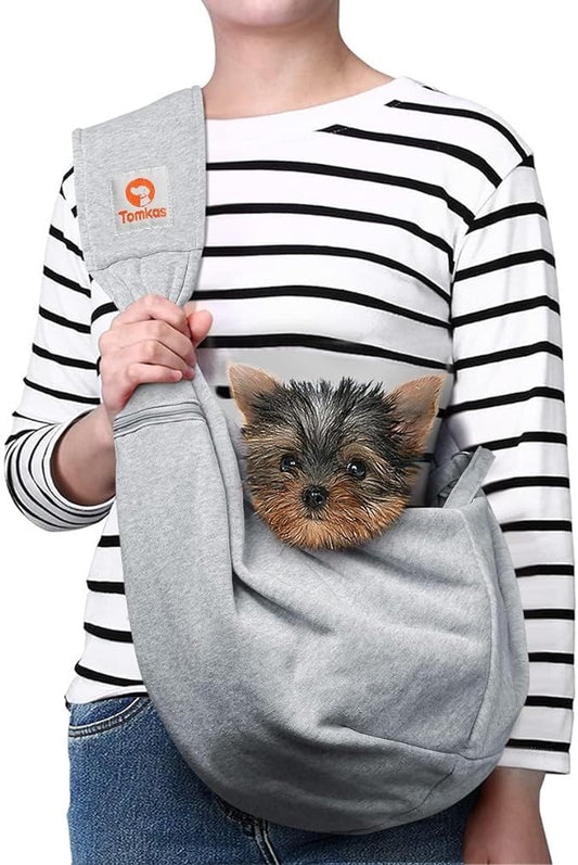 TOMKAS Dog Sling Carrier for Small Dogs pet Slings with Extra Pocket Storage Sling with Storage Pocket