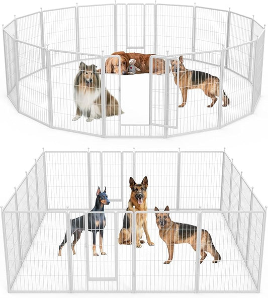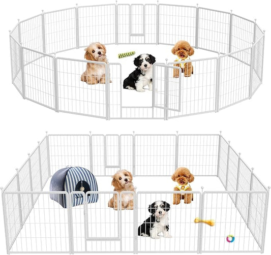 HealSmart Dog Playpen Indoor, Puppy Playpen Indoor Outdoor for Yard, Camping, RV, 40" Height 16 Panels Heavy Duty Dog Pen for Medium/Large Dogs, White