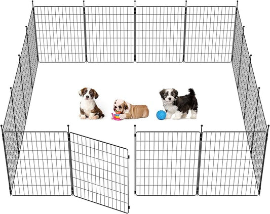 Dog Playpen,Portable Outdoor Dog Fence, Dog Playpen for Large/Medium/Small Dogs, Dog Fences for The Yard,with Doors Foldable Metal (24 inch, 16 Panels)