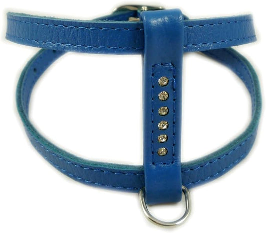 Genuine Leather Dog Harness for Toy Breeds X-Small. 10"-13" Chest Circumference Rhinestones (Blue)