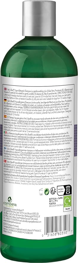 • TOTAL CARE- Vet’s Best Hypo-Allergenic Dog Shampoo is part of our complete treatment system for dry and sensitive skin. Use with Vet’s Best Moisture Mist and Vet’s Best Ear Relief Wash & Dry
