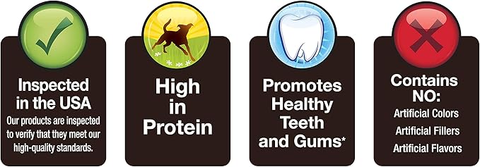 • Promotes dog dental health by helping to clean teeth and gums through mechanical chewing action