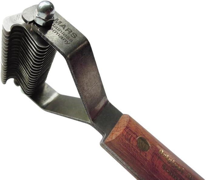 • RELIABLE DOG GROOMING TOOL: Made with stainless steel and a wooden handle for an easy grip, this pet rake stripper tool is perfect for deshedding and thinning your cat or dog’s coat.