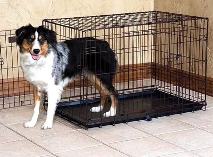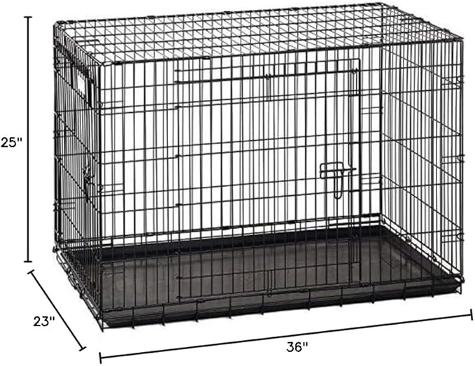 • 36 Inch Dog Crate: Measures 36" x 23" x 25" & weighs 26.5 lbs. Rounded corners eliminate sharp edges prevent snags and non-skid rubber feet protect floors. If in doubt, buy a size up. This collapsable dog crate is easy to store & transport