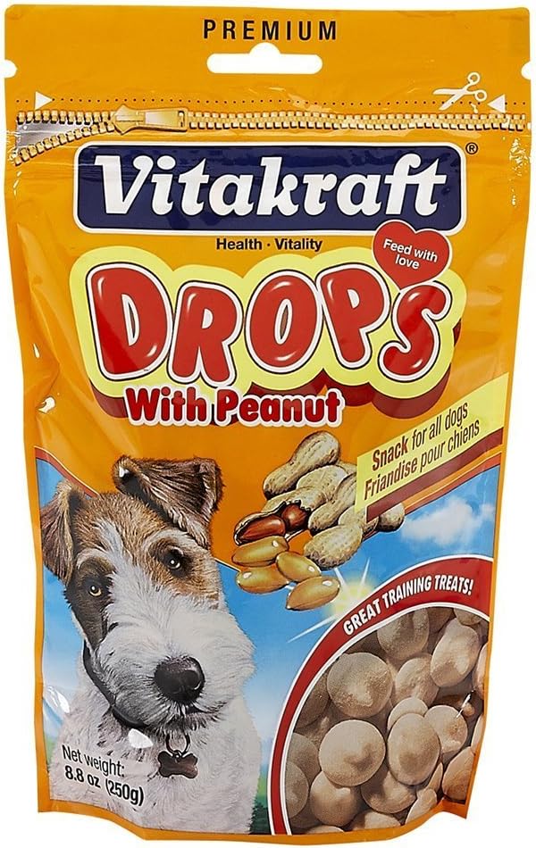 Vitakraft Drops with Peanut Treats for Dogs, Bite-Sized Training Snacks, 8.8 Ounce Pouch