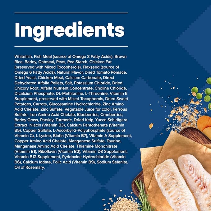 • REAL FISH FIRST: Blue Buffalo's premium dog food features high quality deboned whitefish as the primary ingredient; brown rice, cranberries and vegetables for a balanced diet; and high quality protein that promotes strong muscles
