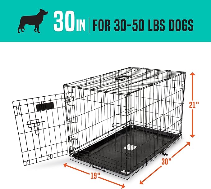 • Reliable, Standard Duty Wire Constuction: this dog crate for medium dogs has a 5-point locking system to eliminate gaps & 1 large door for maximum security and access. Rust-resistant finish makes it suitable for occasional outdoor use