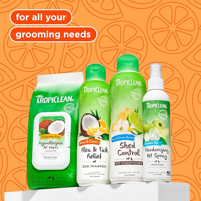 TropiClean Citrus Flea & Tick Shampoo for Dogs, Soothing Bite Relief, Fresh Citrus Scent, Made in the USA, 20oz.