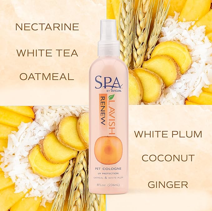 TropiClean SPA Renew Dog Cologne Spray Long Lasting | Peach & Plum Scented Dog Deodorizing Spray | Naturally Derived Salon Grade Ingredients | Made in the USA | 8oz