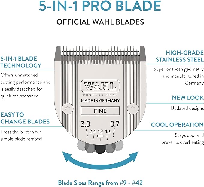 WAHL Professional Animal 5-in-1 Adjustable Blade Arco, Bravura, Chromado, Creativa, Figura, and Motion Pet, Dog, and Horse Clippers - Fine (2179-301)