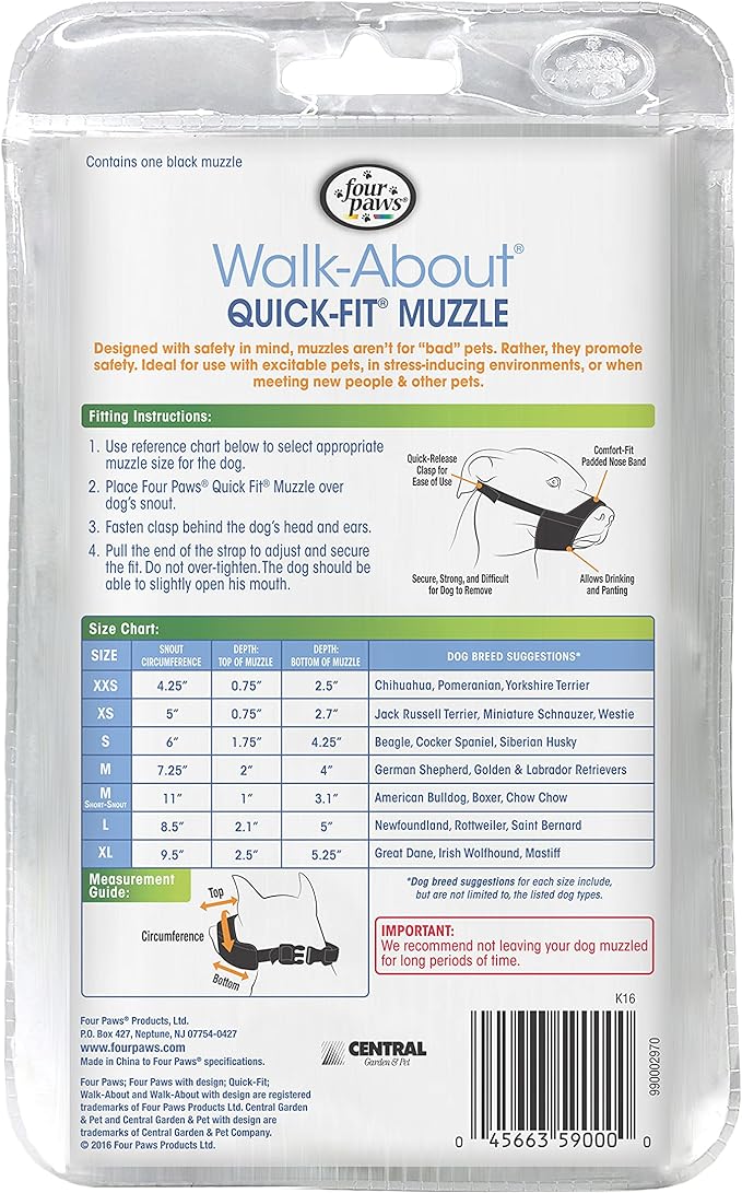 Four Paws Walk-About Quick-Fit Dog Muzzle 3 - Medium Short Snout