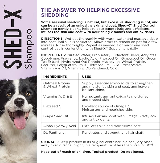 • HELP CONTROL EXCESSIVE SHEDDING – Excessive shedding can result from unhealthy skin and coat. Shed-X Shed Control Shampoo for dogs gently cleans, releases excess hair and exfoliates to reduce shedding.