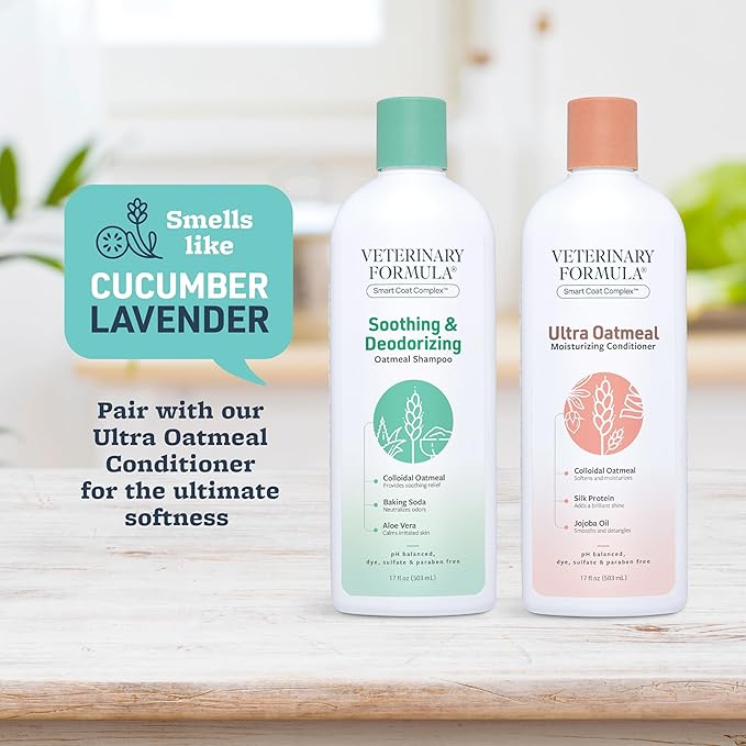 Veterinary Formula Smart Coat Complex Soothing and Deodorizing Oatmeal Shampoo for Dogs, 17 Fl oz – Baking Soda Eliminates Odors, Aloe Vera & Oatmeal Cleanse and Hydrate Skin – Long-Lasting Fragrance