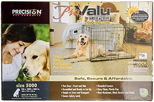Precision Pet Products Two Door Provalue Wire Dog Crate, 42 Inch, For Pets 70-90 lbs, With 5-Point Locking System