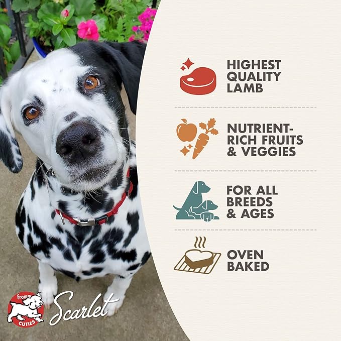 • CRUNCHY DOG TREATS - This 8 oz bag contains savory oven-baked dog snacks with lamb, cranberries, apples, vegetables, and parsley. Our lamb recipe dog treats provide a crunchy texture and are free from artificial colors, flavors, or preservatives.