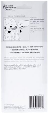 • Features 40 tightly spaced ½" stainless steel pins to rid hair of debris from tear stains, food, and dirt