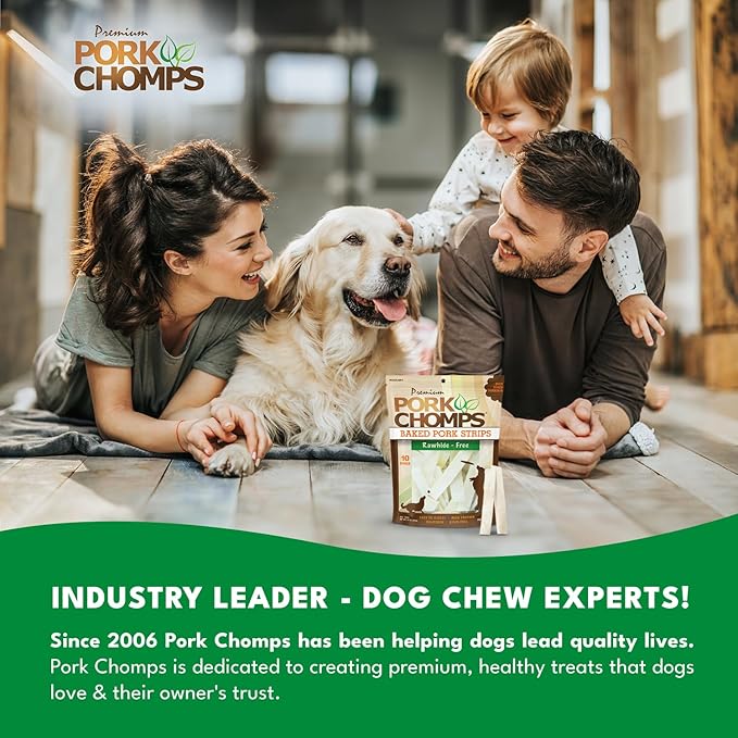• Industry Leader - Since 2006, Pork Chomps has been helping dogs lead quality lives. Pork Chomps is dedicated to creating premium, healthy treats that dogs love & their owner's trust