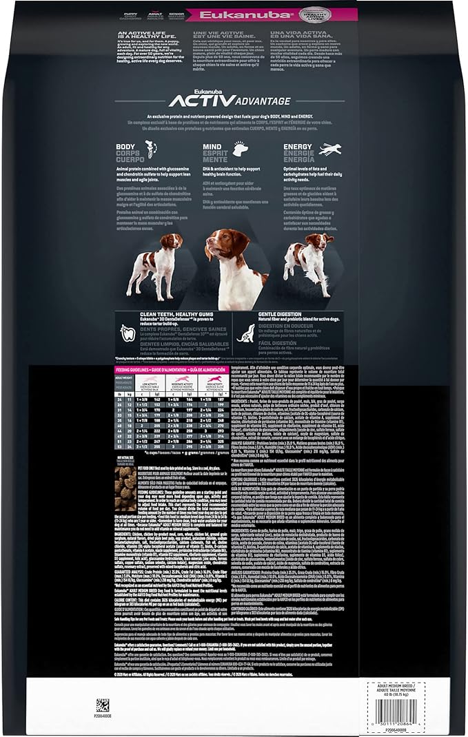• FOR MEDIUM BREED DOGS: Eukanuba Adult Medium Breed Dog Dry Food Formula delivers complete and balanced nutrition for medium breed dogs over 12 months old and weighing 24-54 lbs
