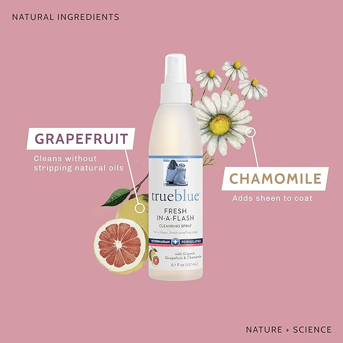 TrueBlue Grapefruit & Chamomile Fresh-in-a-Flash Cleansing Dog Spray – Refreshes, Conditions Coats for Dogs, Puppies, Cats – Moisturizing, Toxin Free, Natural Botanical Blend – 8.7 Fl. Oz.