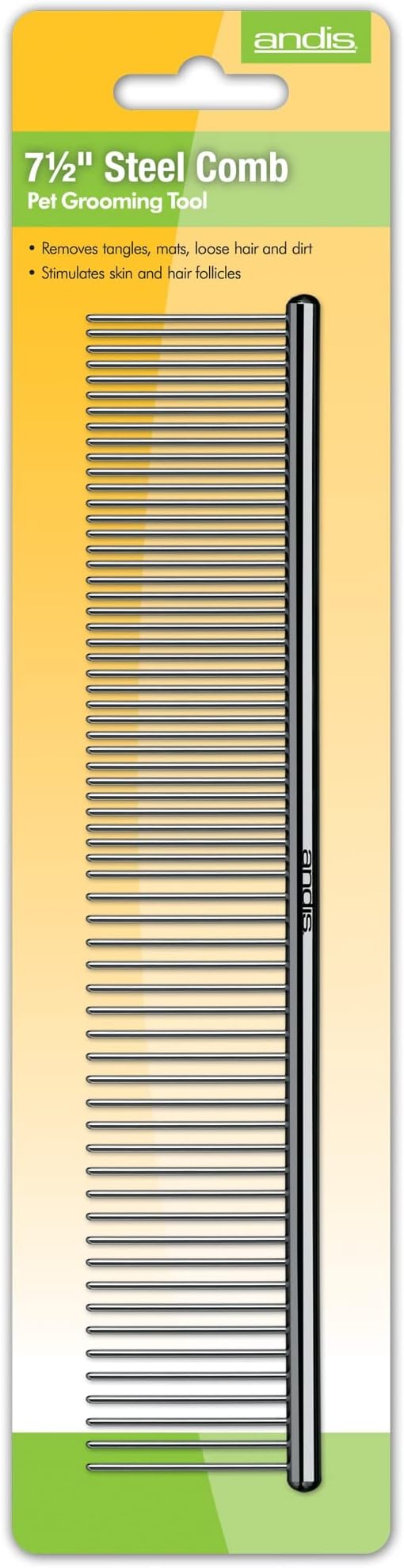 Andis 65730 Stainless-Steel Comb for Knots, Mats & Loose Hair Removal - Effective Dematting Tool, Comfortable, Lightweight, Portable & Safe for Dogs, Cats & Pets – Silver, 7-1/2-Inch