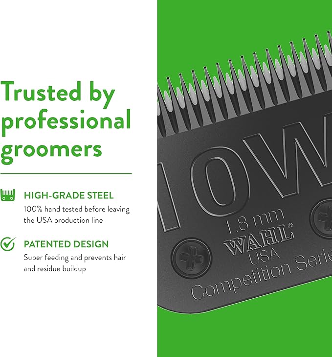 • The extra wide #10W blade provides a 1/16-inch (1 8mm) cut length; operates 2 5 times faster than original Wahl Competition Blades