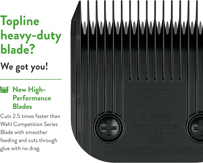 • The full coarse #5F blade provides a 15/64-inch (6mm) cut length; operates 2 5 times faster than original Wahl Competition Blades