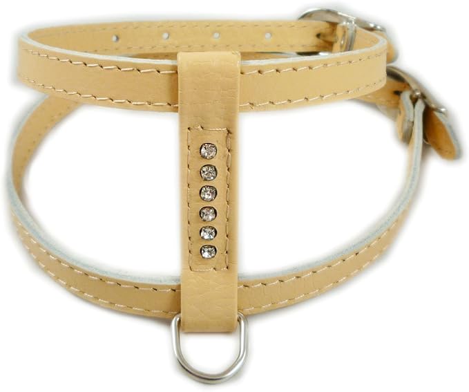 Genuine Leather Dog Harness for Toy Breeds X-Small. 10"-13" Chest Circumference Rhinestones (Beige)