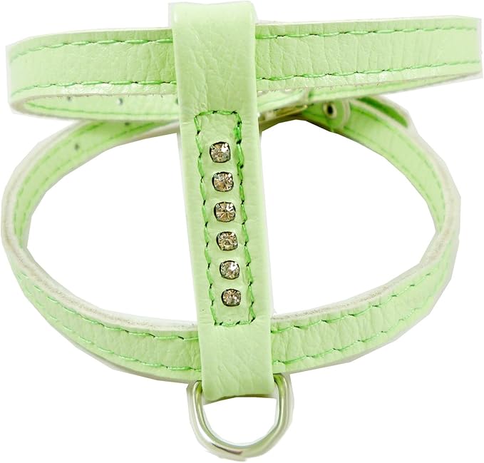 Genuine Leather Dog Harness for Toy Breeds X-Small. 10"-13" Chest Circumference Rhinestones (Green)