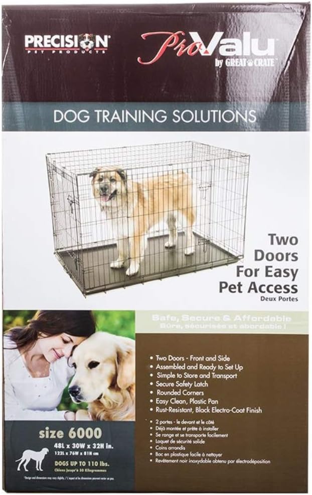 Precision Pet Products Two Door Provalue Wire Dog Crate, 48 Inch, For Pets 90-125 lbs, With 5-Point Locking System
