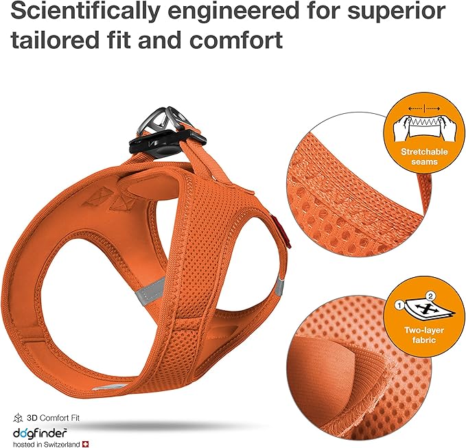 • Step-in harness lightweight, breathable Velcro closure Ideal tension distribution to prevent choking