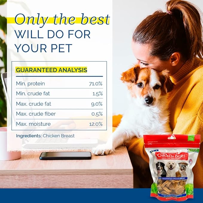 • Chicken Bites are 100% natural, dehydrated, made of single-ingredient chicken breast