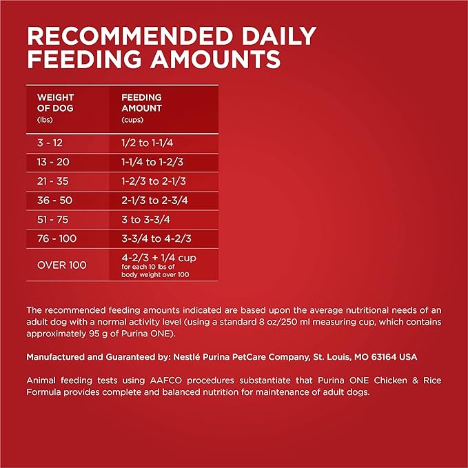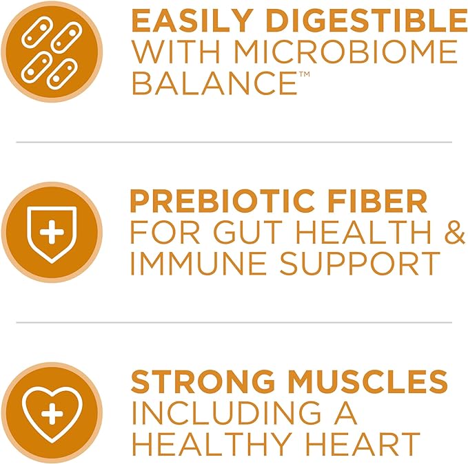 • Purina ONE chicken and rice dog food is easily digestible with a microbiome balance and a SmartBlend of high-quality ingredients, including prebiotic fiber for dogs