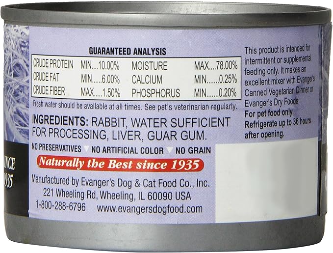 Evanger'S 776255 24-Pack Grain Free 100-Percent Rabbit For Dogs And Cats, 6-Ounce
