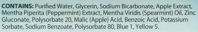 • Contains the natural breath fresheners Apple Essence, Baking Soda and Fresh Mint