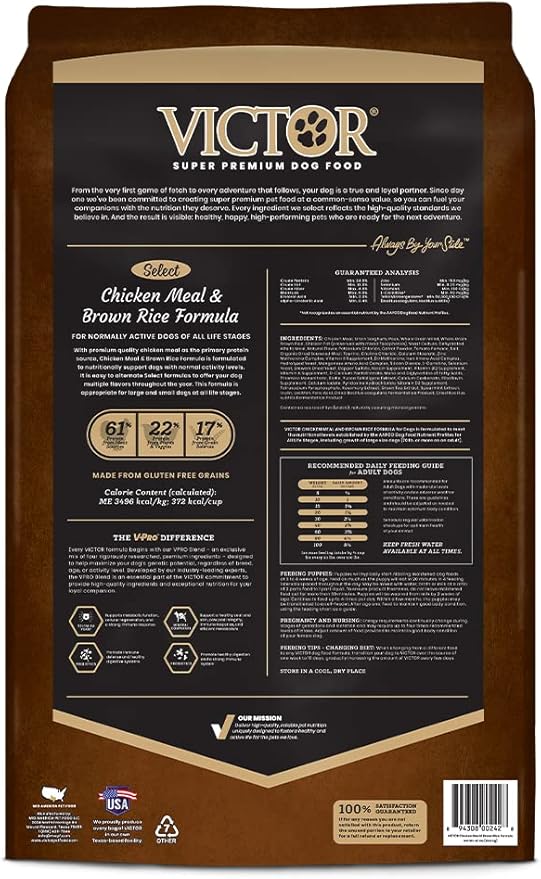 Victor Super Premium Dog Food – Chicken Meal & Brown Rice Formula - Dry Dog Food for All Normally Active Dogs of All Life Stages – Ideal for Dogs with Meat Protein Allergies, 40 lb