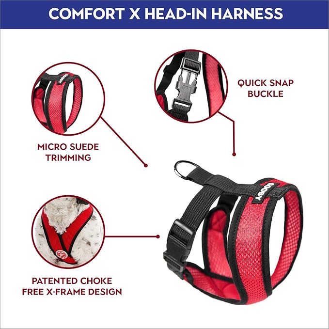 Gooby Comfort X Head in Harness - Red, Small - No Pull Small Dog Harness, Patented Choke-Free X Frame - Perfect on The Go Dog Harness for Medium Dogs No Pull or Small Dogs for Indoor and Outdoor Use