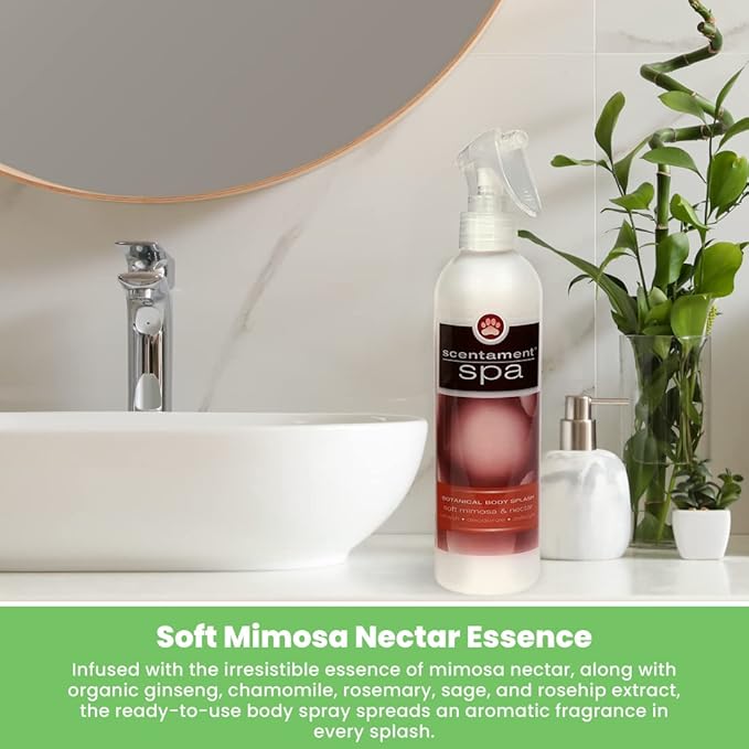 • Soft Mimosa Nectar Essence: Our ready-to-use body spray is infused with the irresistible essence of mimosa nectar, along with organic ginseng, chamomile, rosemary, sage, and rose hip extract and spreads an aromatic fragrance in every splash.