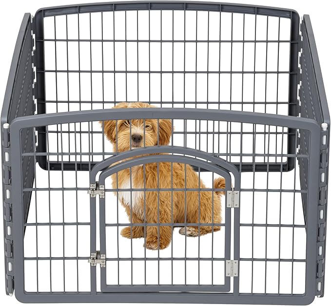 • MADE IN USA with global materials - The IRIS USA exercise playpen with door for dogs is excellent for dog play yards, play gates, as a small dog fence, and more. Built with multiple panels and featuring the option to add even more panels, you can create a playpen that perfectly fits your needs.