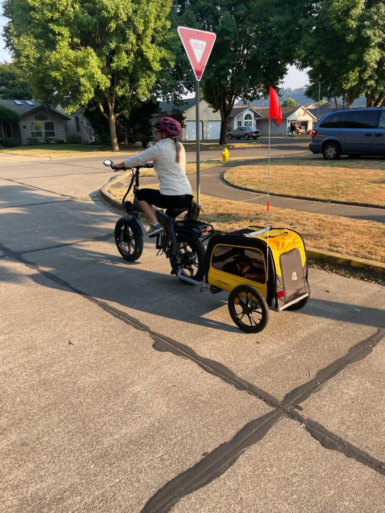 The more we use this trailer, the more I love it! The size is perfect for my small-to-medium-sized dog. I love watching her enjoy the ride through the mirrors. The tires handle well on both sand and pavement, and it's quick and easy to install on my bike. Overall, it's worth the money, lightweight, and super easy to assemble. My dog approved, and so do I!
