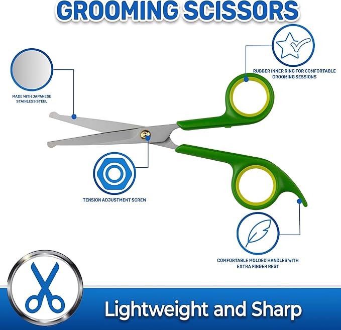 • 【PET'S SAFETY】These grooming scissors are designed with rounded tips to completely avoid accidentally poking or injuring your pet. Much safer for sensitive areas ensuring a comfortable grooming session