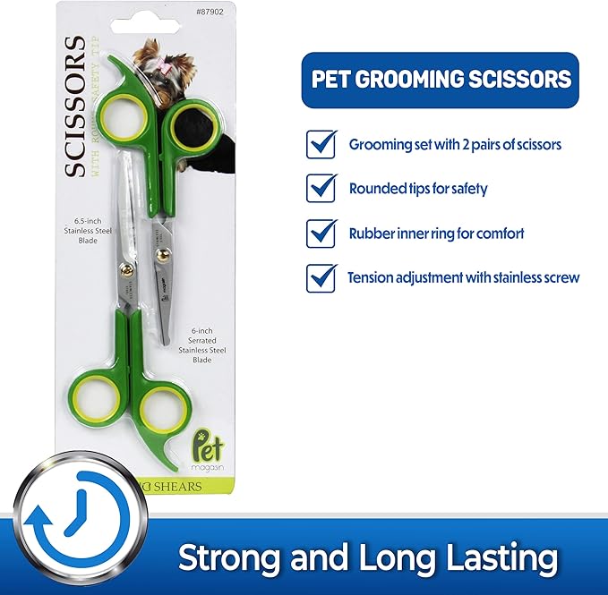 • 【QUICK & SIMPLE】Grooming made easy with Pet Magasin's premium grooming scissors, surgical grade; You will find grooming your pet 🐈 🐶 is not hard at all, with the help from our scissors, sharp and effective