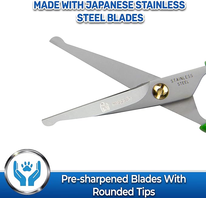 Pet Magasin Japanese Stainless Steel Grooming Scissors (2) for Facial Hair and Larger for Body Trimming with Round Tip
