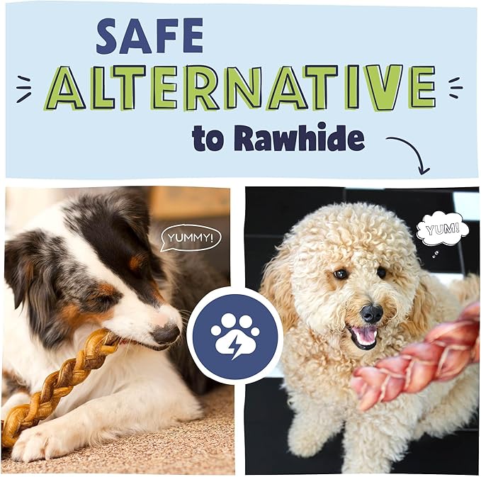 • Tough Highly-Digestible Rawhide Alternative: Our braided bully sticks are made of three bully sticks woven together for a durable chew that reduces boredom and stress while keeping your dog happy (and away from your shoes!)