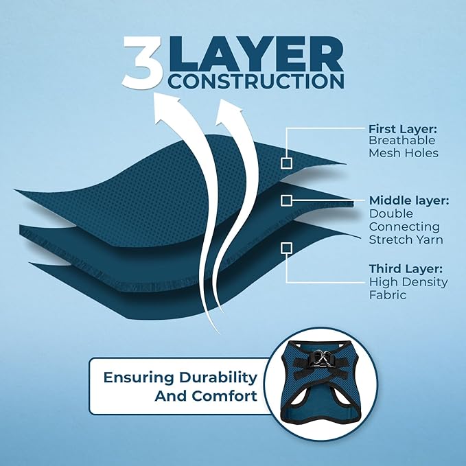 • Comfort All Year: Made with a soft and breathable air mesh, this lightweight, fast drying harness ensures maximum comfort for your pet during walks, regardless of the season