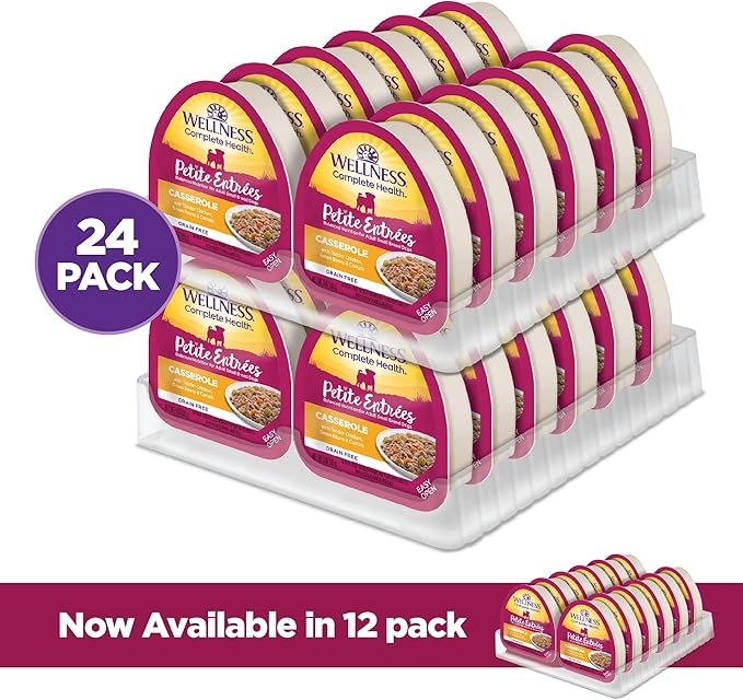 Wellness Natural Pet Food Petite Entrees Casserole Grain Free Natural Wet Small Breed Dog Food, Tender Chicken, Green Beans & Carrots, 3-Ounce Cup (Pack of 24)