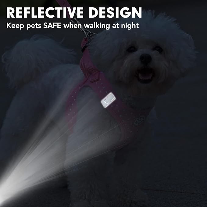 BINGPET Vest Harness for Puppy and Cat, No Pull Adjustable Reflective Step-in Puppy Harness Cute Pink Polka Dot Soft Dog Harness for Small and Medium Dogs (Pink, M(Chest Girth:16-18 in))